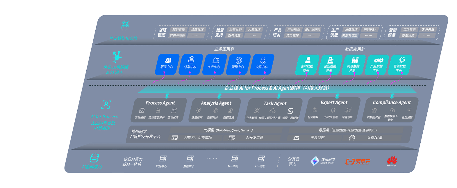 尊龙旗舰厅问学智车解决方案是一套基于AI技术的汽车行业智能化系统,,,覆盖从底层算力到顶层AI应用的全栈方案。。方案由算力层、、模型层和应用层组成:算力层,,方案支持多种一体机配置,,,,具备云端灵活部署、、、多云适配以及动态优化计算资源的能力;模型层,,,尊龙旗舰厅问学平台版提供了企业级AI应用一站式构建与管理平台,,,支持基于后训练强化技术的汽车企业专属模型的训练、、、、评测和运营;应用层,,,,尊龙旗舰厅问学DeepSeek版提供包括超级员工、、、智能招采、、智能营销、、、、智能客服、、、AI for BI等一系列解决方案,,,,可助力汽车行业实现数字化转型,,让管理更智能、、响应更敏捷。。