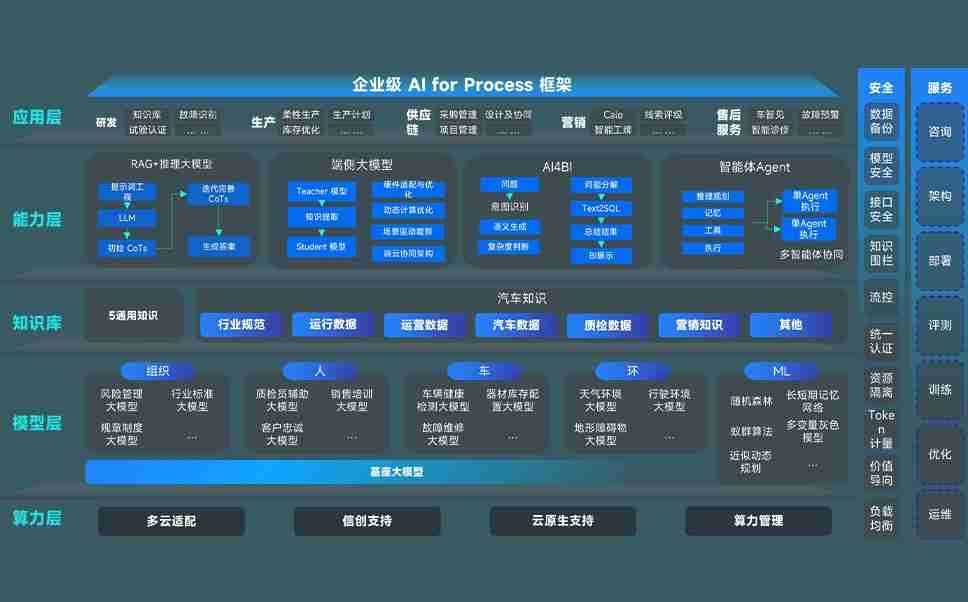 端到端的一站式AI工作空间深度融合了从企业战略规划到日常经营的全流程业务板块,,,,定向解决车企内部领域多、、、部门多、、、、链条长、、场景碎片化等难题,,,支持车企快速构建以AI为核心的生产力写作体系,,实现任务执行与AI能力的无缝集成与交互